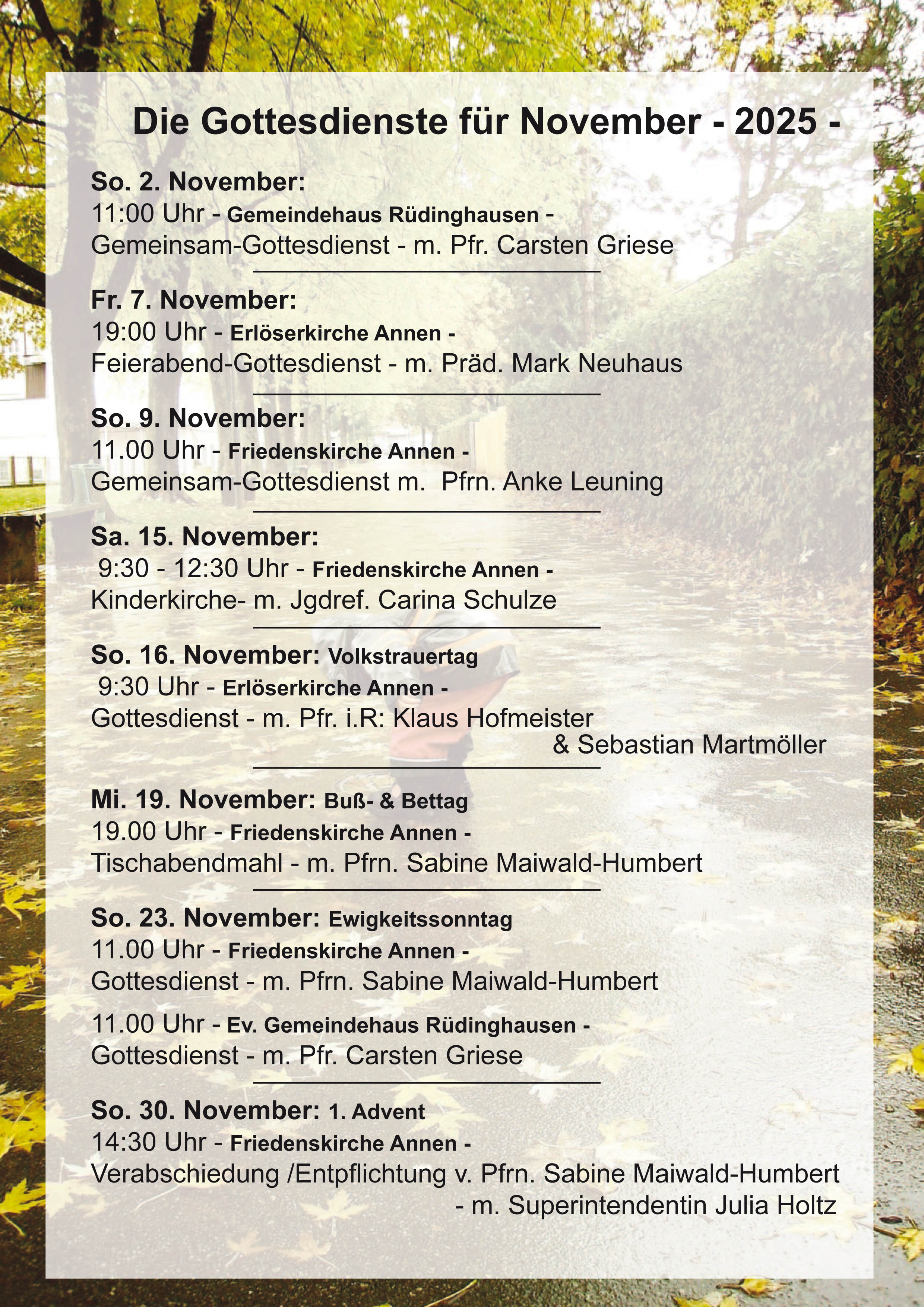 Gottesdienste im November